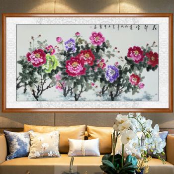 国画名家手绘原创国色天香国画牡丹古韵桃木