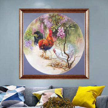 纯手绘手工 中式油画 写实油画 飞鸟与红