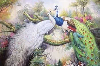 孔雀上墙幸福吉祥新中式写实孔雀油画纯手绘玄关油画实木外框纯手绘动物油画孔雀图
