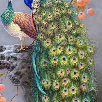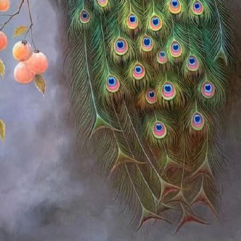 • 柿柿如意孔雀图实力画家纯手绘新中式孔雀图