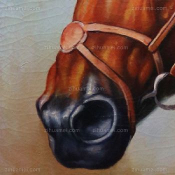 • 独家裂纹麻布油画 欧式经典油画 棕色马头 线条框