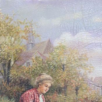首页 --> 艺术商城 --> 油画人物 --> 欧美人物画 --> 字画美官方旗舰店 --> 独家裂纹麻布油画 欧式油画 纯手绘手工 两位采花的姑娘 欧美人物画
