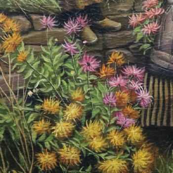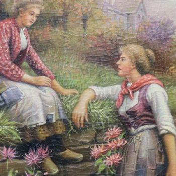 • 独家裂纹麻布油画 欧式油画 纯手绘手工 两位采花的姑娘 欧美人物画
