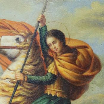 • 独家裂纹麻布油画 欧式经典油画 纯手绘手工 屠龙记 欧美人物画