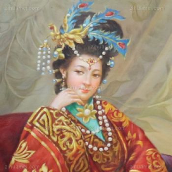 首页 --> 艺术商城 --> 油画人物 --> 中式人物 --> 字画美官方旗舰店 --> 装饰画油画客厅挂画壁画 纯手绘手工 古装女王范 线条框