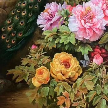 首页 --> 艺术商城 --> 动物油画 --> 孔雀 --> 字画美官方旗舰店 --> 纯手绘精品油画孔雀牡丹图富贵牡丹玄关挂画低调奢华高货油画
