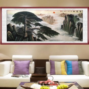 首页 --> 艺术商城 --> 国画山水画 --> 写意山水画 --> 字画美官方旗舰店 --> 手绘 手工 国画 山水画 迎客松 小八尺(240*98cm) 典雅红褐实木框