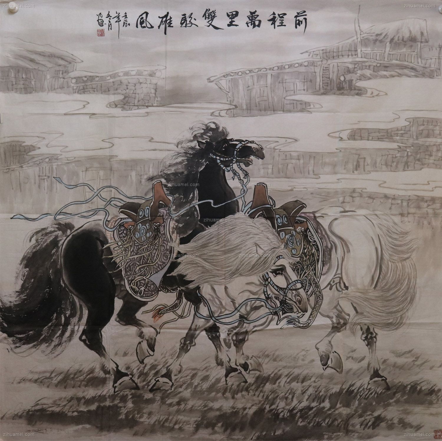 首页 --> 艺术商城 --> 国画动物画 --> 骏马 --> 字画美官方旗舰店 --> 手绘 动物画 国画 前程万里 双骏雄风 典雅红褐实木框