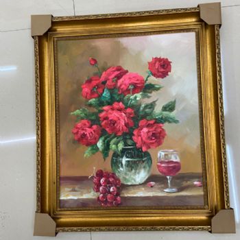 • 欧式风格花卉油纯手绘精品油画实木外框现货现发葡萄花瓶与酒杯