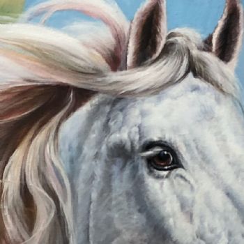 • 纯手绘动物油画写实马头骏马图白马油画适合办公室挂画