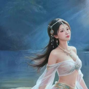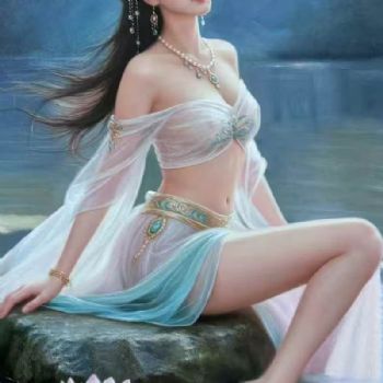 首页 --> 艺术商城 --> 油画人物 --> 中式人物 --> 字画美官方旗舰店 --> 布面油画美女创意纯手绘手工油画溪边莲花女