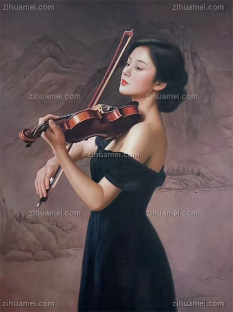 • 纯手绘手工人物写实油画拉提琴的艺术家
