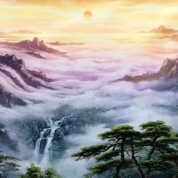 • 实力派画家 手绘油画 刀画 油画风景 山水油画 云海 迎客松 雄伟山势 聚宝盆 家庭挂画