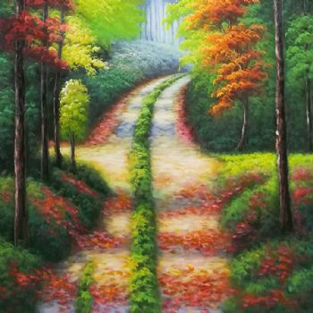 • 纯手绘手工 装饰油画 风景画 丰收 黄金大道 中式油画 家庭挂画 酒店挂画