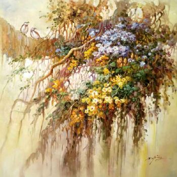 紫藤萝花 中式油画
