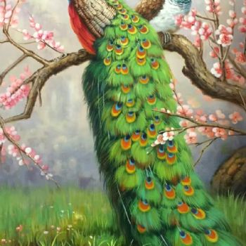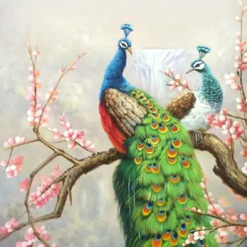 双孔雀 中式油画