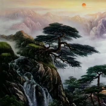 • 油画风景 实力派画家 手绘油画 刀画 山水油画 高山迎客松 家庭挂画 油画风景 油画作品欣赏