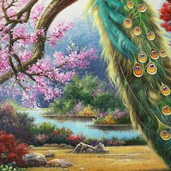 首页 --> 艺术商城 --> 动物油画 --> 孔雀 --> 字画美官方旗舰店 --> 纯手工手绘油画欧式中式客厅玄关走廊卧室挂画孔雀风景有框装饰画A