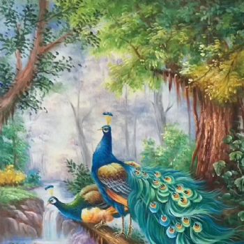 绘油画吉祥孔雀