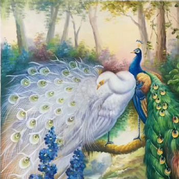 手绘油画吉祥孔雀