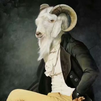 • 纯手绘手工 现代油画艺术 羊头人身油画 家庭挂画 酒店挂画 办公室挂画C