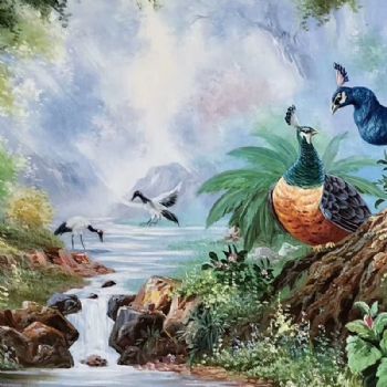 首页 --> 艺术商城 --> 动物油画 --> 孔雀 --> 字画美官方旗舰店 --> 手绘油画孔雀花开富贵吉祥如意壁画横幅欧式玄关墙立体装饰画