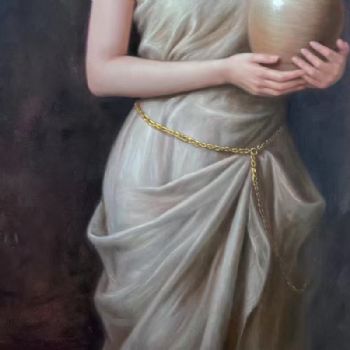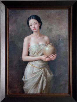 • 油画人体美女人体艺术油画手绘写实抱着罐子的女人