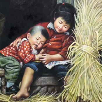 首页 --> 艺术商城 --> 油画人物 --> 中式人物 --> 字画美官方旗舰店 --> 纯手工手绘油画中式油画客厅壁炉玄关装饰挂画姐弟情乡村风景