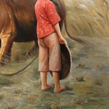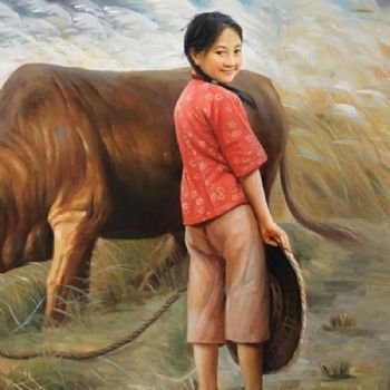 首页 --> 艺术商城 --> 油画人物 --> 中式人物 --> 字画美官方旗舰店 --> 纯手工手绘油画中式油画客厅壁炉玄关装饰挂画童年女娃放牛