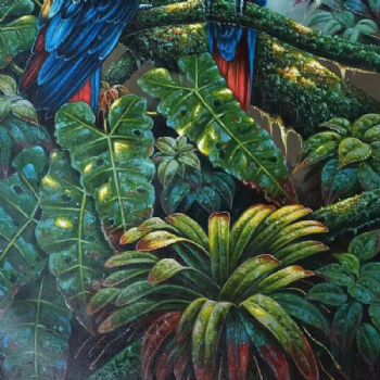 • 热带雨林风情手绘油画客厅玄关装饰画餐厅挂画里约大冒险金刚鹦鹉