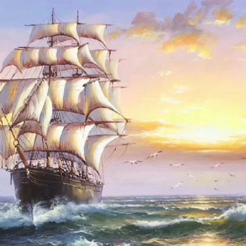 • 纯手绘油画客厅卧室挂画餐厅壁画书房手绘欧式装饰画 帆船