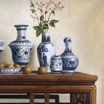 青花瓷 手绘静物油画