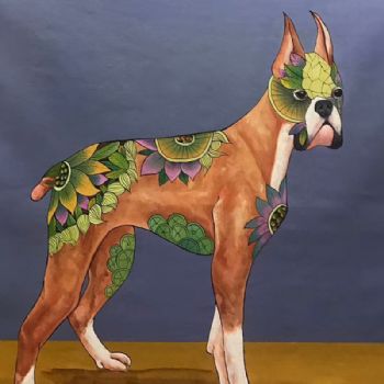 • 纯手绘手工家庭挂画酒店挂画玄观中式挂画多彩的狗装饰画