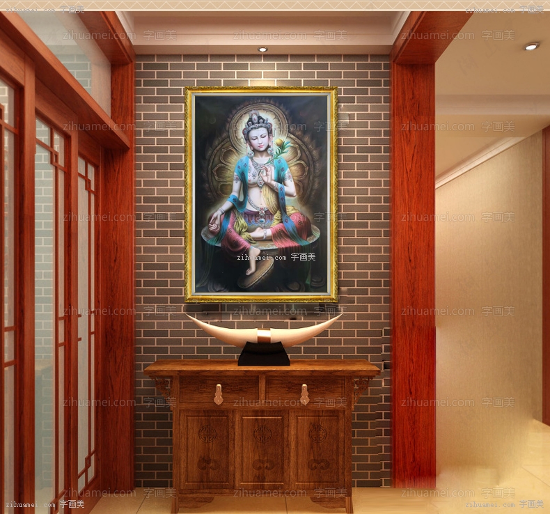 • 新中式客厅玄关装饰画敦煌壁观音菩萨手绘油画 D
