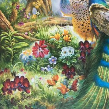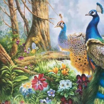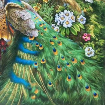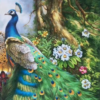 孔雀油画