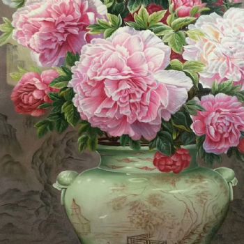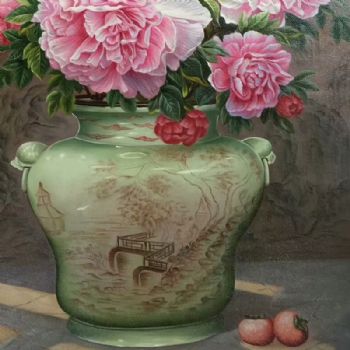 首页 --> 艺术商城 --> 油画花卉 --> 牡丹花 --> 字画美官方旗舰店 --> 中式客厅玄关装饰画精品油画牡丹青花瓷写实手绘油画