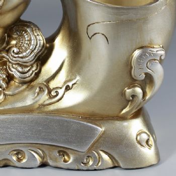 树脂工艺品是以树脂为主要原料,通过模具浇注成型,制成各种造型美观形象逼真的树脂人物、树脂动物、树脂昆虫、树脂花鸟,并可制成各种仿真效果。如:仿铜、仿金、仿银、仿水晶、仿玛瑙、仿大理石、仿汉白玉、仿木等树脂工艺品。