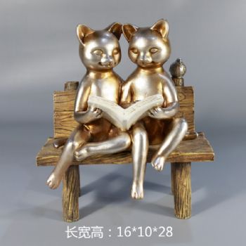 • 创意摆件小猫小狗读书摆件雕塑摆件中式摆件精品手工雕塑