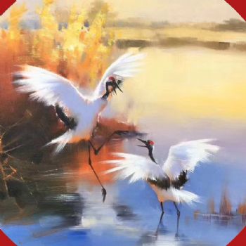 • 印象油画 手绘作品 丹顶鹤系列之一 寓意延年长寿 是家有老人挂画的佳选