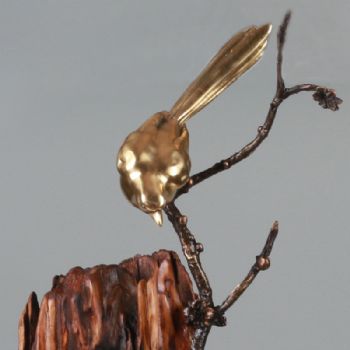 • 喜上枝头XLA3-26铜工艺品 铜雕塑 家居摆件 办公室软装 黄铜 船木 大理石
