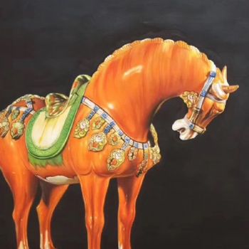 首页 --> 艺术商城 --> 油画静物 --> 瓷器静物写实油画 --> 字画美官方旗舰店 --> 写实唐三彩 彩色战马 颜色丰富 中式手绘油画 适合办公室挂画 玄关挂画