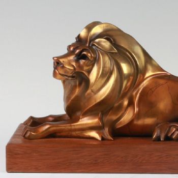 • 气定神闲狮王XLA4-48铜工艺品 铜雕塑 家居摆件 办公室软装 黄铜 柚木2.4KG