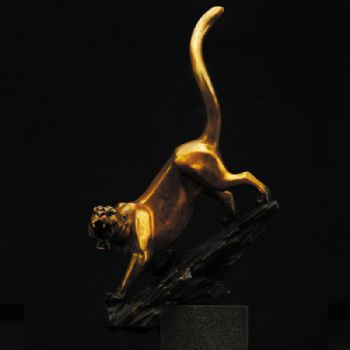 • 极速动态烈豹XX011铜工艺品 铜雕塑 家居摆件 办公室软装 黄铜 大理石