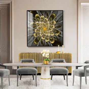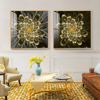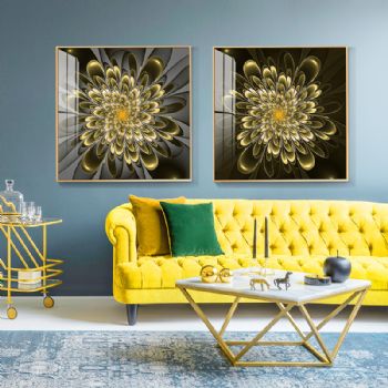 晶瓷与金属的结合,诠释家居装饰新风尚。晶瓷画,顾名思义不但有像水晶一样的通透,更有像玉瓷一样的无暇。画与画固为一体,中间没有空气与杂质、晶莹剔透、碧洁无暇。