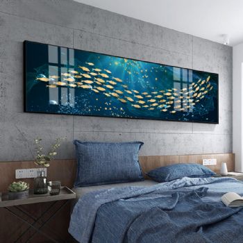 • 游鱼卧室床头装饰画晶瓷画现代轻奢沙发背景墙壁画大气客厅装饰画
