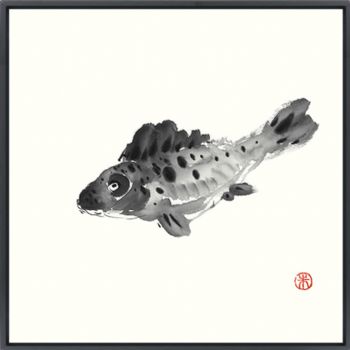 • 仿八大山人水墨国画孤傲的鱼高档轻奢晶瓷画装饰画铝合金框玄关走廊挂画