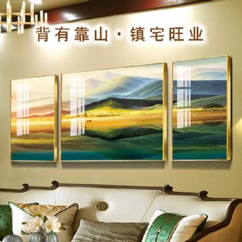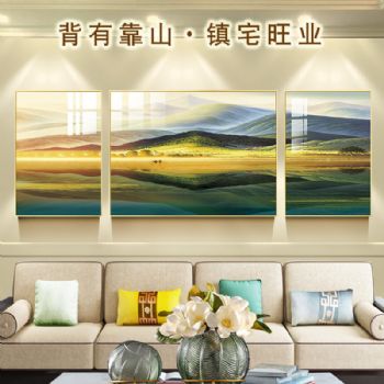• 沙发背景墙装饰画客厅风水靠山招财山水三联挂画壁画巨人山晶瓷画