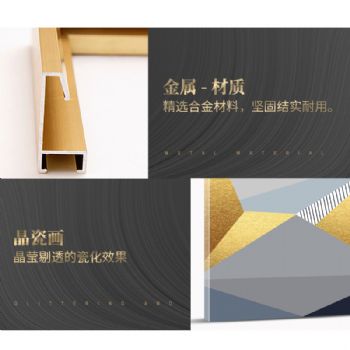 晶瓷与金属的结合,诠释家居装饰新风尚。晶瓷画,顾名思义不但有像水晶一样的通透,更有像玉瓷一样的无暇。画与画固为一体,中间没有空气与杂质、晶莹剔透、碧洁无暇。