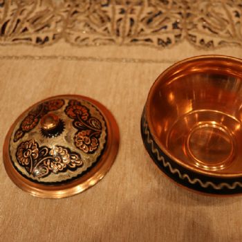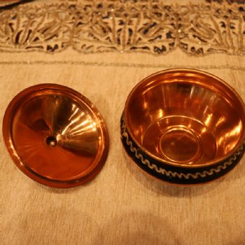 伊朗的手工艺品中最出名的莫过于米娜(mina),Khatam和波斯地毯。而米娜乍看像瓷器, 其实是铜制的。它是在压制好的铜盘 上,以锤子手工敲打出凹凸有致的形状,然后经过五六次手工绘制,2次高温烧制将颜色固定才算完成,每套都很好看呢,装饰效果很强。