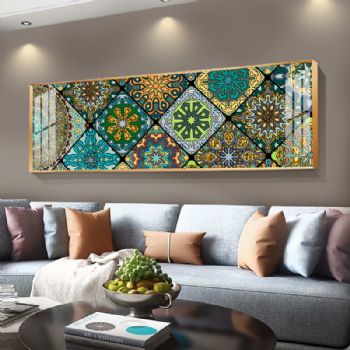 晶瓷与金属的结合,诠释家居装饰新风尚。晶瓷画,顾名思义不但有像水晶一样的通透,更有像玉瓷一样的无暇。画与画固为一体,中间没有空气与杂质、晶莹剔透、碧洁无暇。